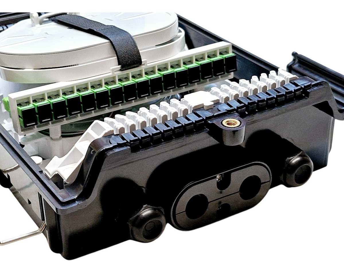 NAP CTO 2X16 SANGRIA CON SPLITTER 1X16 PLC 4X16 + FIJACION POSTE CON ABARAZADERA X10 UNIDADES