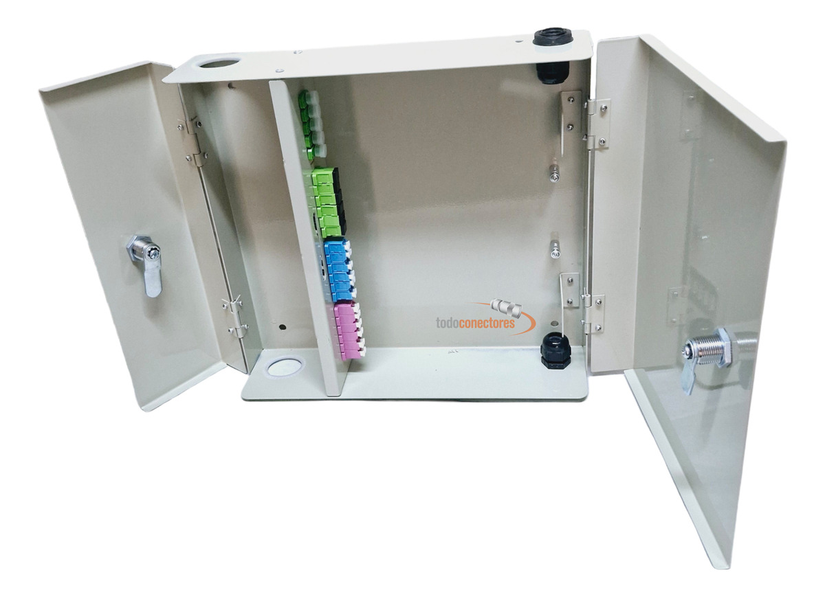 ODF DRISTRIBUIDOR DE FIBRA OPTICA PARA PARED SC/APC MONOMODO 24 FIBRAS SIMPLES 48 DUPLEX