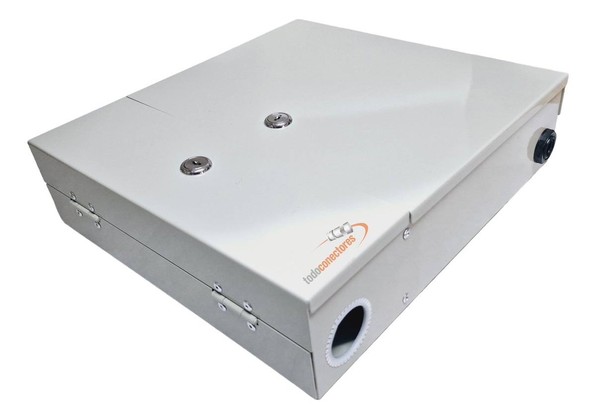 Distribuidor de pared apto para 24 fibras, permite fusión y patcheo, ambos en sectores independientes